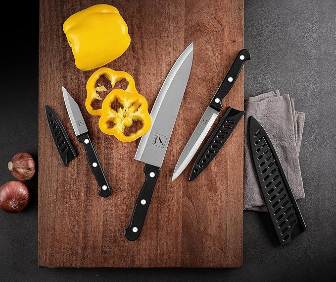 1.Includes chef, utility, and paring knives for versatile kitchen use.