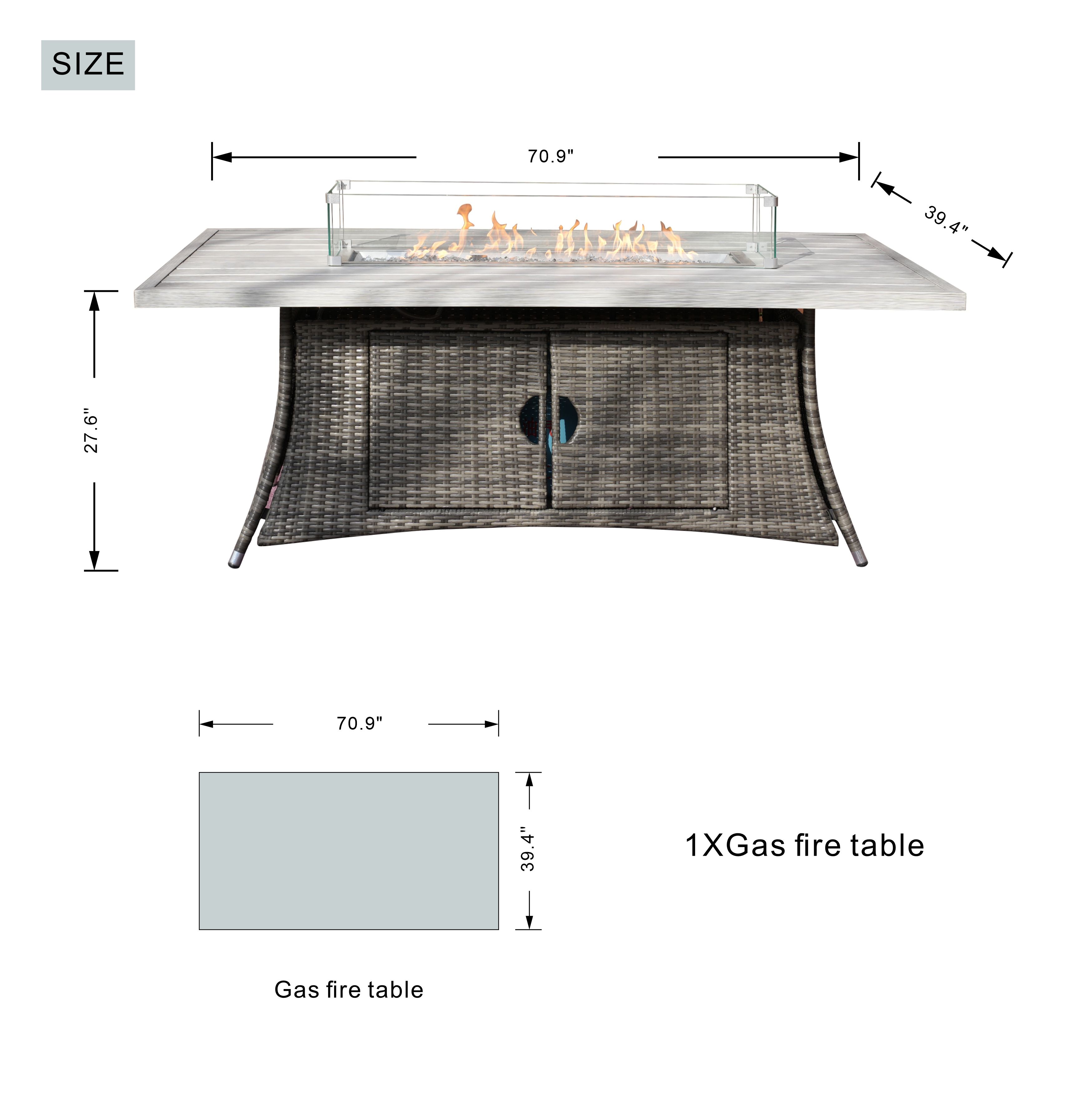 The modern style and design of the Outdoor Brown Wicker Rectangular Gas Fire Pits will compliment any outdoor living space. Tuck away the 20 lbs. propane tank (not included) in the compartment under the table. The impressive 50,000 BTUs of heat output will keep your guests warm and cozy on the chilliest of nights. Aluminum tabletop is light and rust-proof. The firepit system with Insulation layer to avoid heat conduction on the metal table.