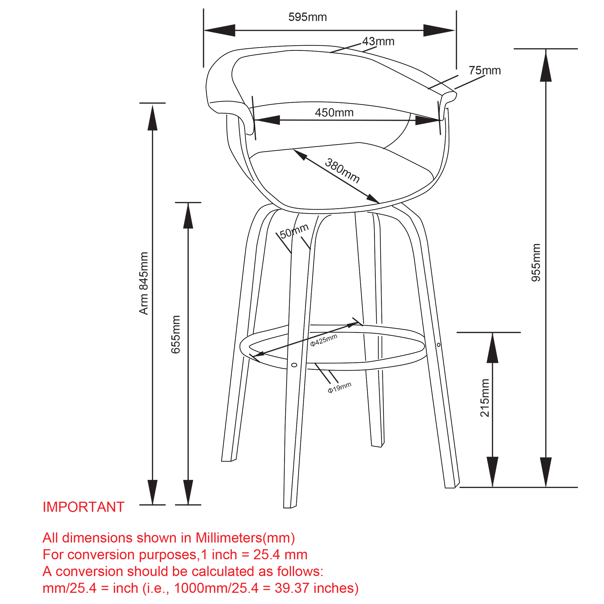 • 26" counter height stool with 360° swivel seat