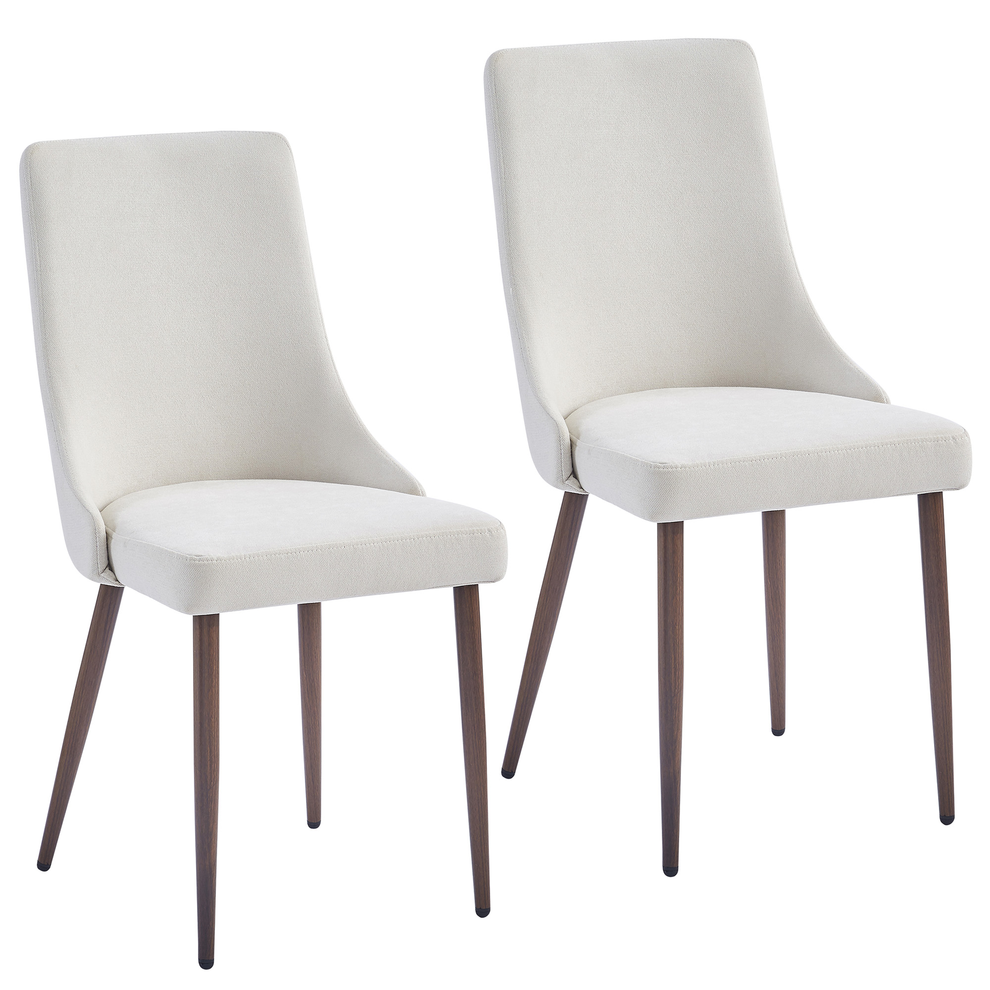 Composed of wood, fabric, and metal, this side chair is a show stopper all its own. With its curved wood seat frame, seat cushion covered in fabric upholstery, and metal legs emblazoned with a walnut finish through the process of heat transferring, this chair unifies a multitude of elements all into one perfectly composed design. The comfortable seat allows for hours of conversation around the dinner table, while the slim, tapered look of the metal legs adds a splash of sex appeal. The versatility of this unique piece allows it to be styled with a variety of furnishings.