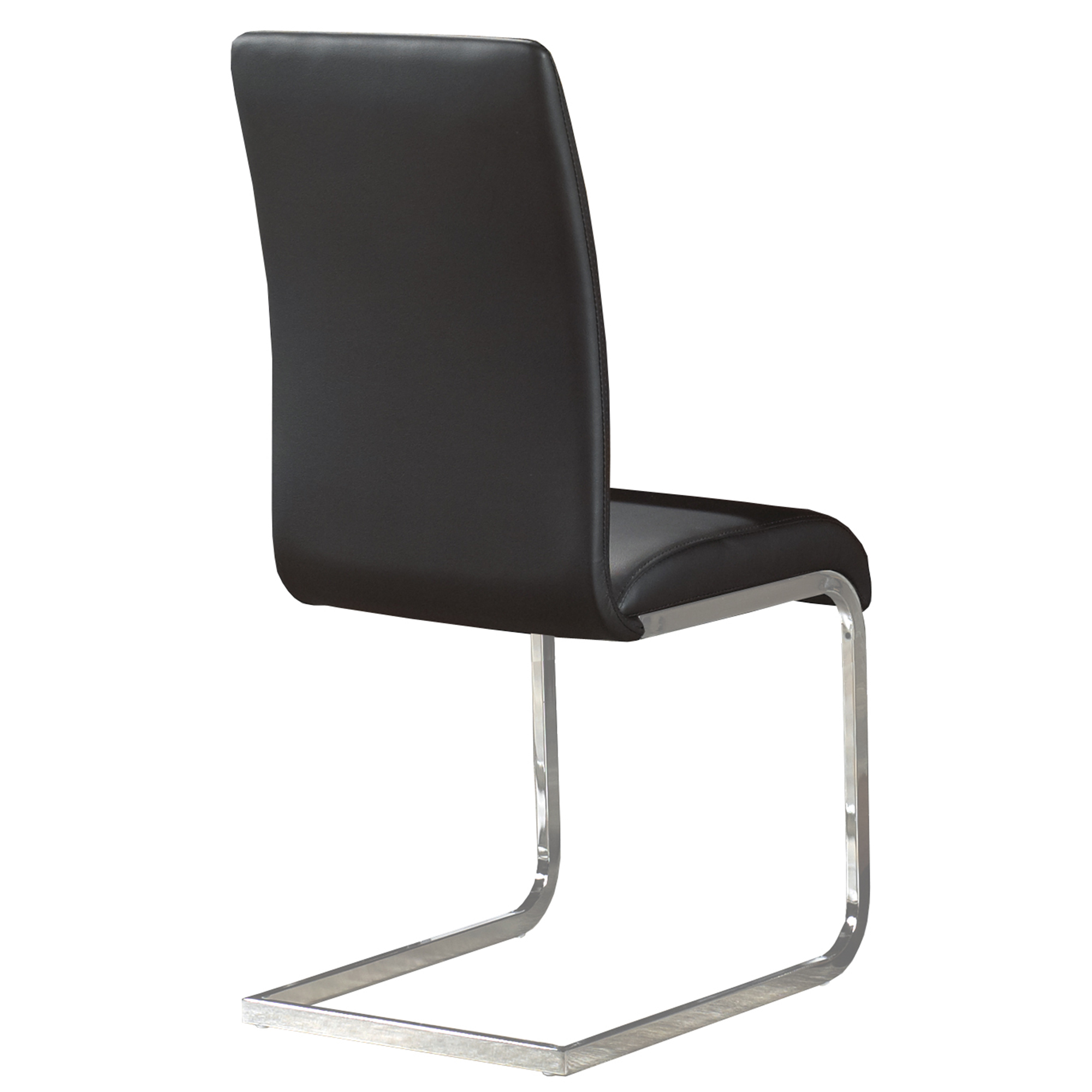 Contemporary beauty that is ideal for small spaces. The clear glass top and airy design create the impression of space. Chromed metal legs provide sturdy support. Great for casual dining. Contemporary style chair with chromed metal frame and faux leather seat. The subtle curves on the chair back and seat provide plenty of comfort.