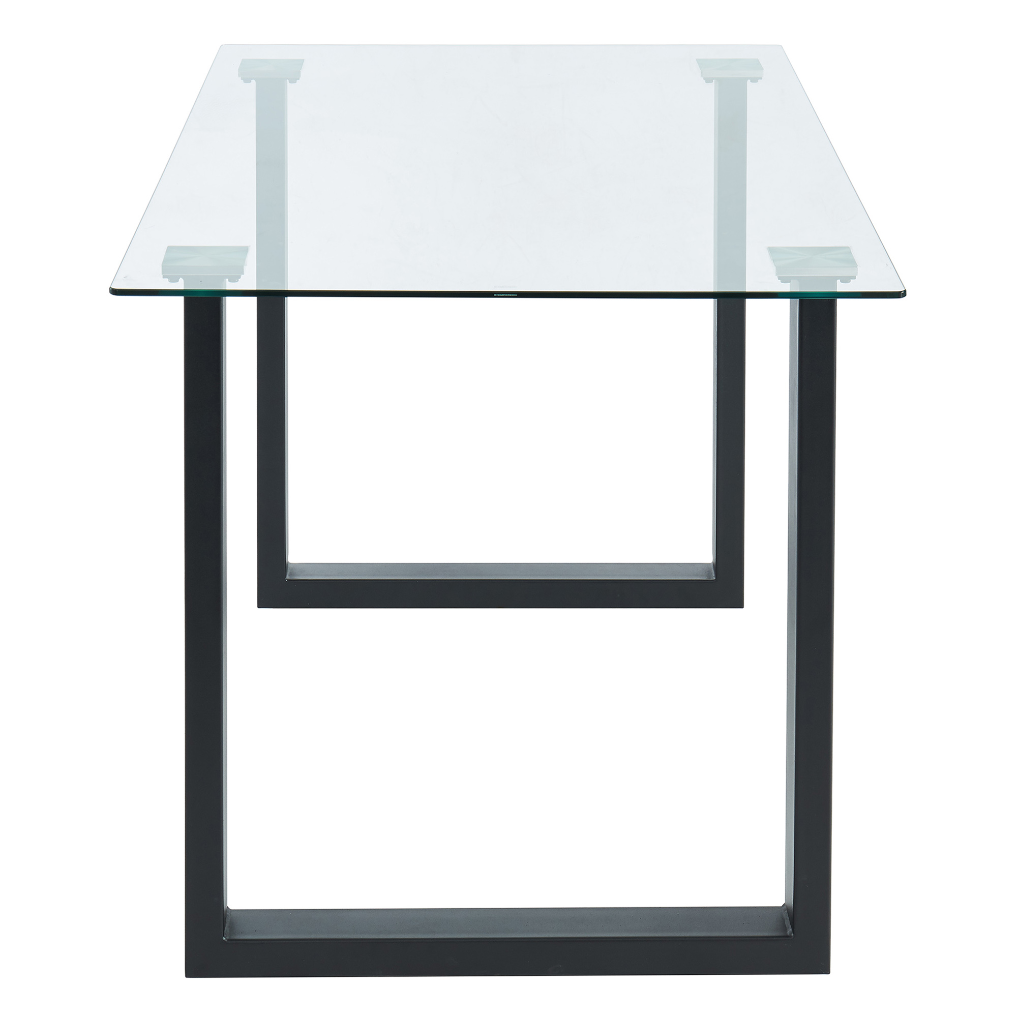 The clean-line design and clear tempered glass gives this table a modern, minimalist look that's punctuated with the sleek black frame. Minimal assembly is required. This oversized mid-century dining chair will bring warmth and comfort to any casual or formal dining space. The plush cushions are finished with piping details on the front and back, while the black metal legs are topped (bottomed?) with a chrome accent. The vintage-look faux leather upholstery gives off a rustic vibe while the chrome adds a contemporary touch.