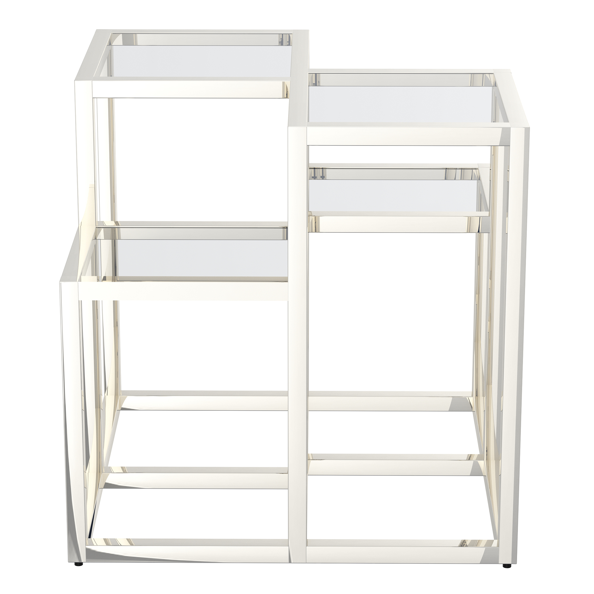 This fun, cluster-style table will be an instant conversation starter. Polished metal and clear glass provide an airy contrast to what might otherwise be a busy design. Versatile in use, this table can sit by a sofa, alongside a bed, in a powder room, or in any space you wish to place it.