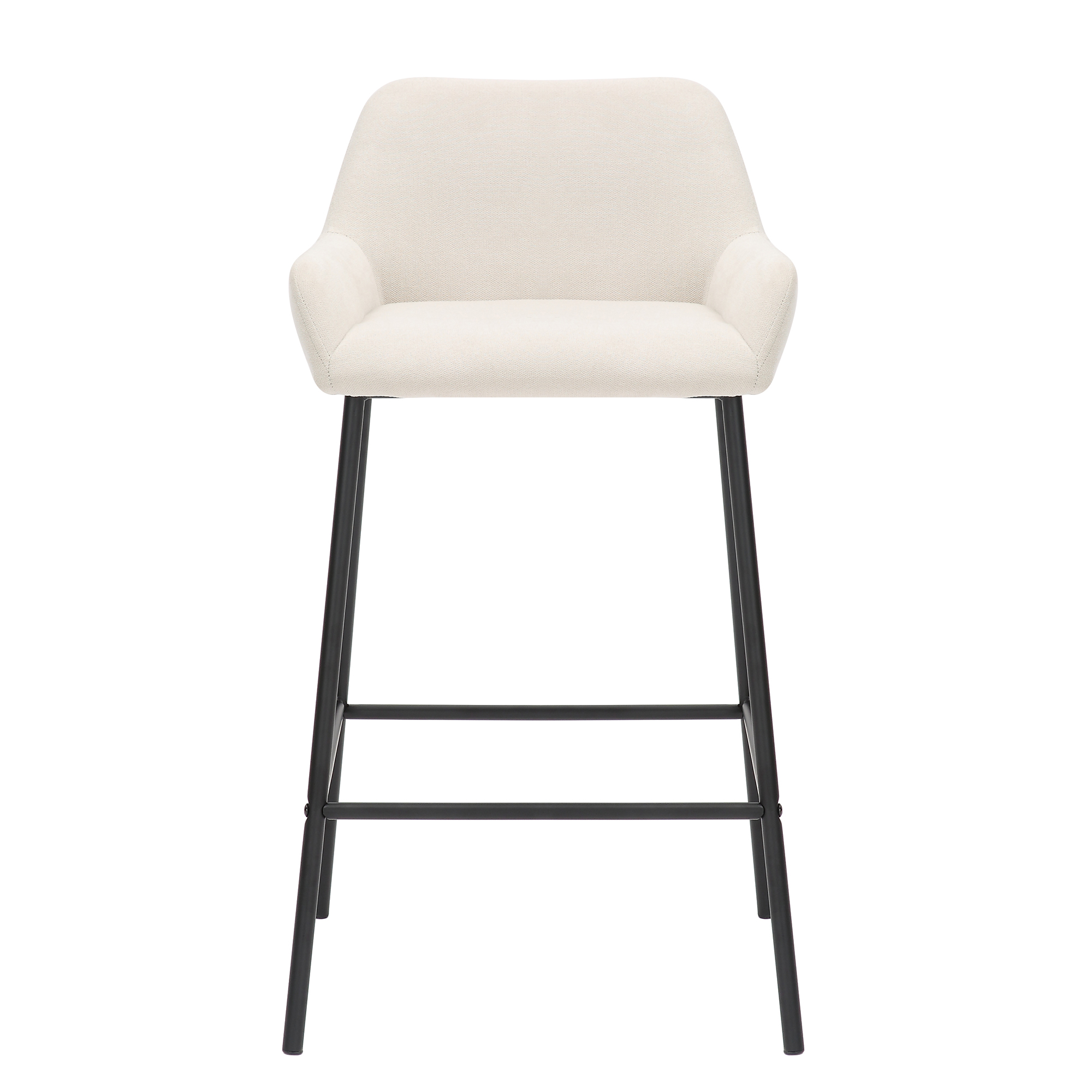Contemporary counter height stool perfect for casual or formal seating at a kitchen island or a rec room bar. The plush cushioned seat and back will provide hours of comfort. The sturdy metal frame is finished in a matte black metal which allows for an easy match with any decor. The rich, fabric upholstery looks elegant, is on trend, and is easy to wipe clean.