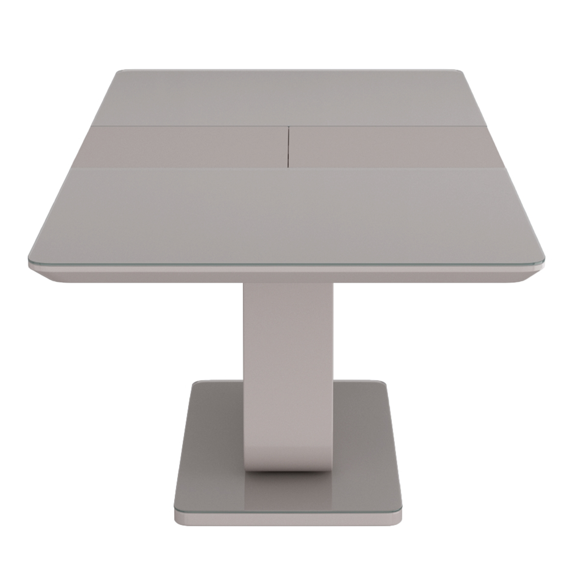 • 5mm tempered grey glass on table top and base plate; extension without glass creates a two-tone look on table top