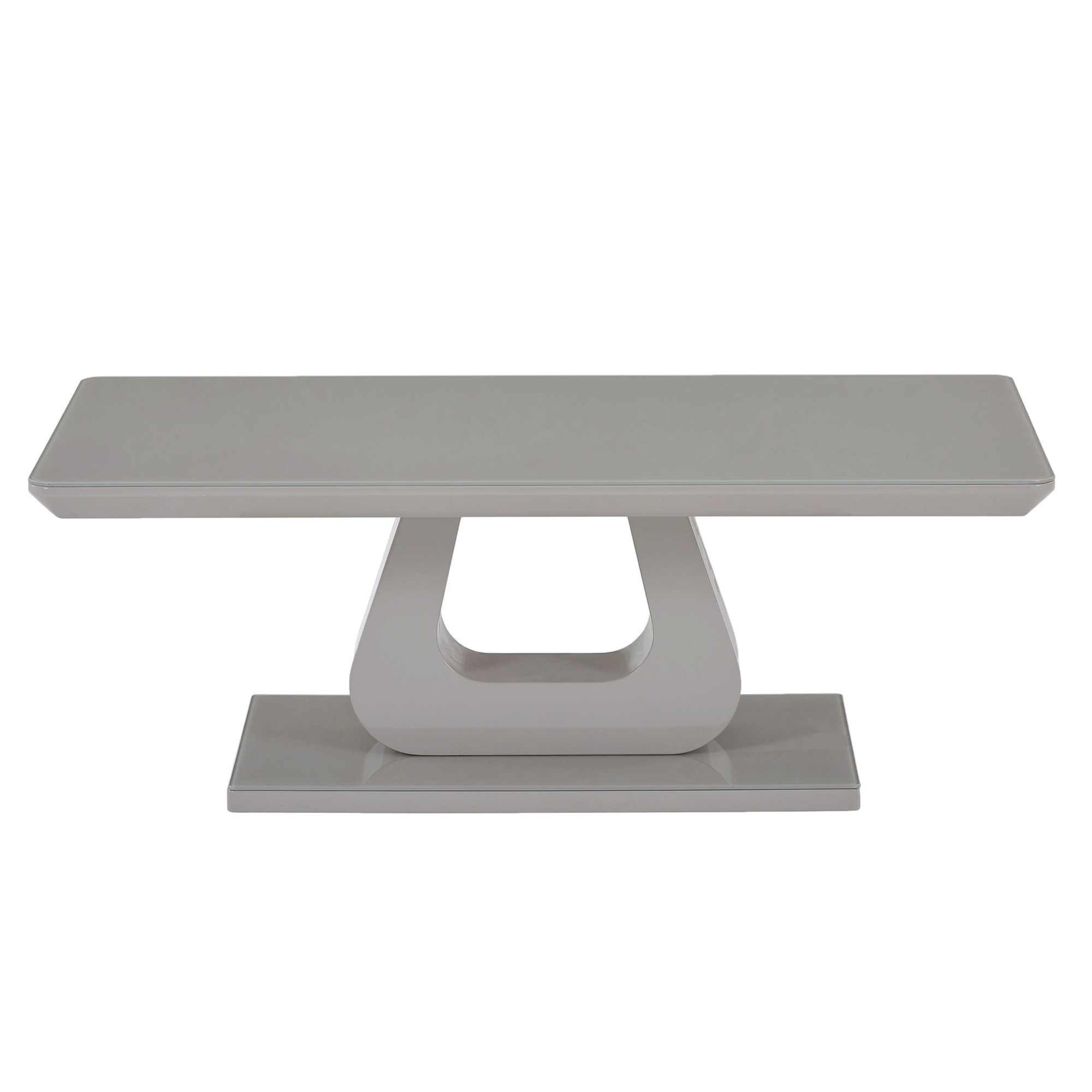 The high gloss, grey painted finish gives this table a high end feel without busting your budget. Topped with a tempered grey-tinted glass on the table top as well as the base, this table will elevate your living room design. The fun, modern pedestal base will start many conversations. Neutral colouring allows for an easy blend with many decor styles.