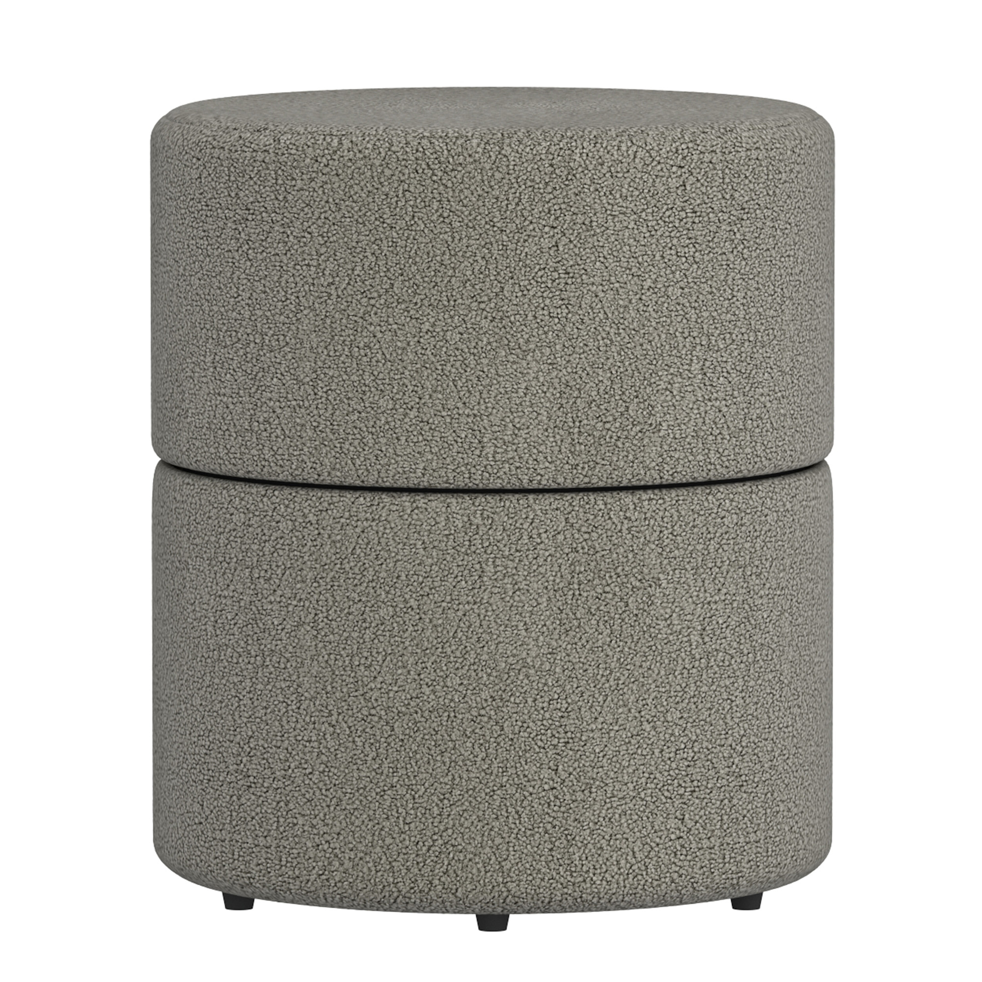 Bring a little unexpected fun with the 360 degree swivel on this stool. Fully upholstered in a soft and cozy boucle fabric, this ottoman can be used as a vanity seat, or as extra seating in a living room.