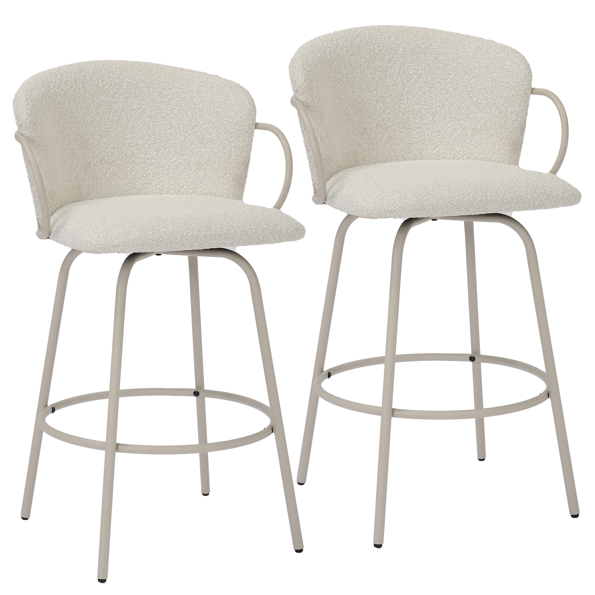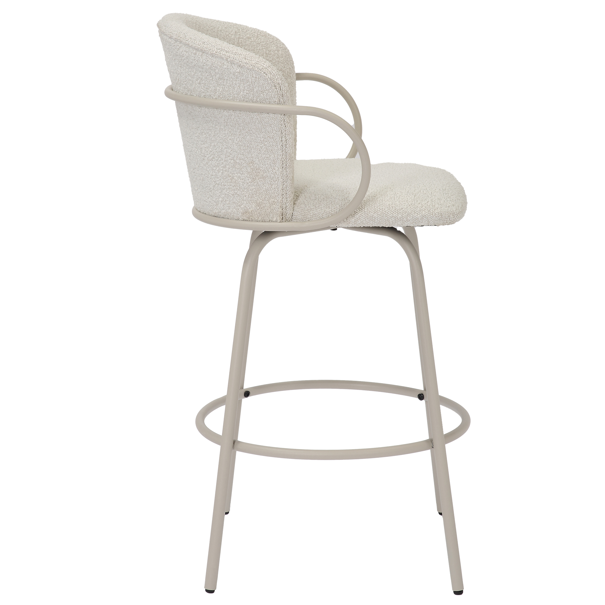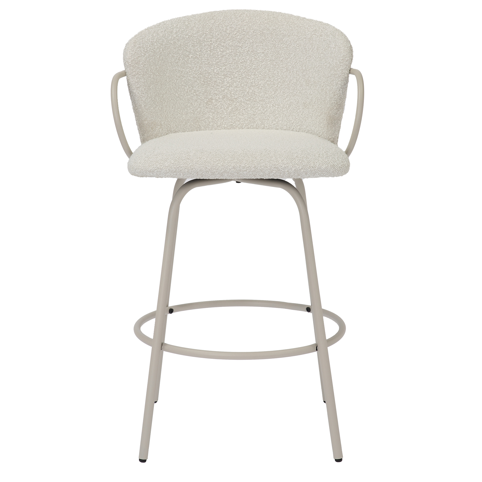 Whether you're enjoying a casual meal or entertaining guests, this stool provides the perfect perch with an inviting, timeless appeal. Fixed height counter stool has full-swivel seat, making conversations fun and easy. The textured boucle fabric is a an easy match to any decor style.