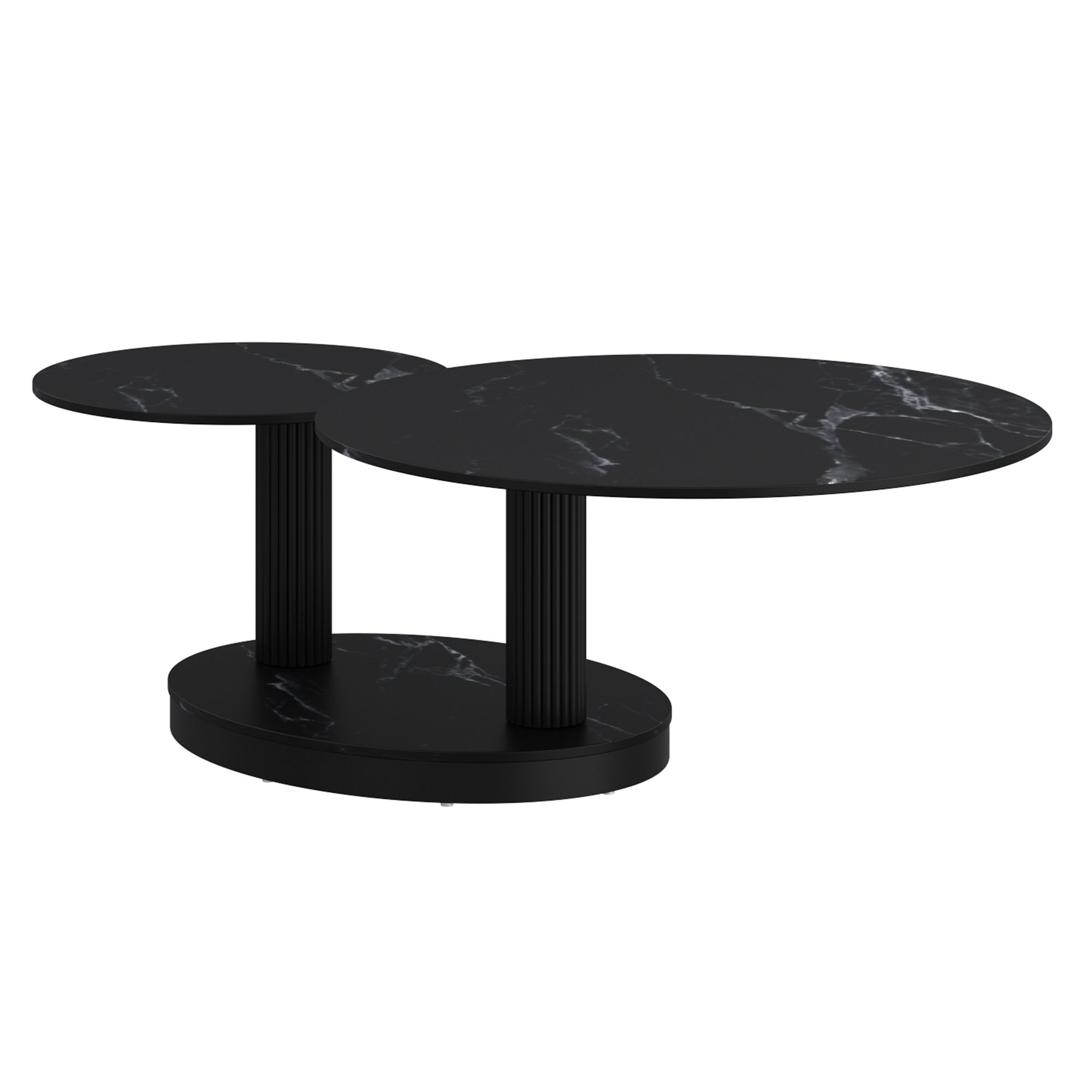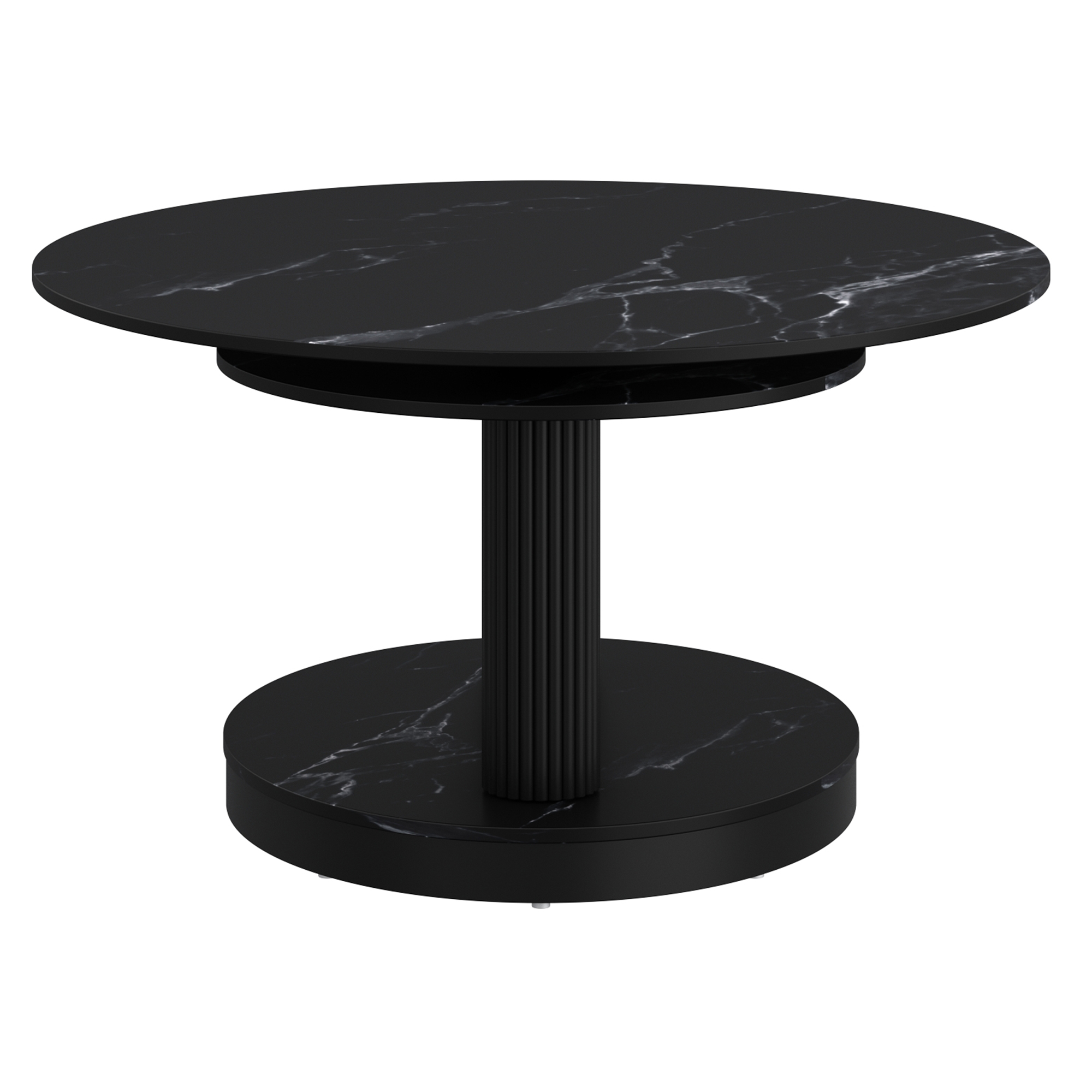 Elevate your living space with this contemporary coffee table, designed for both style and functionality. Featuring an innovative extendable top, this piece effortlessly adapts to your needs, providing extra space when you need it most. The durable sintered stone on the table tops and base combine with the reeded pedestal posts to create an exceptionally gorgeous table that will work in casual or formal living spaces.