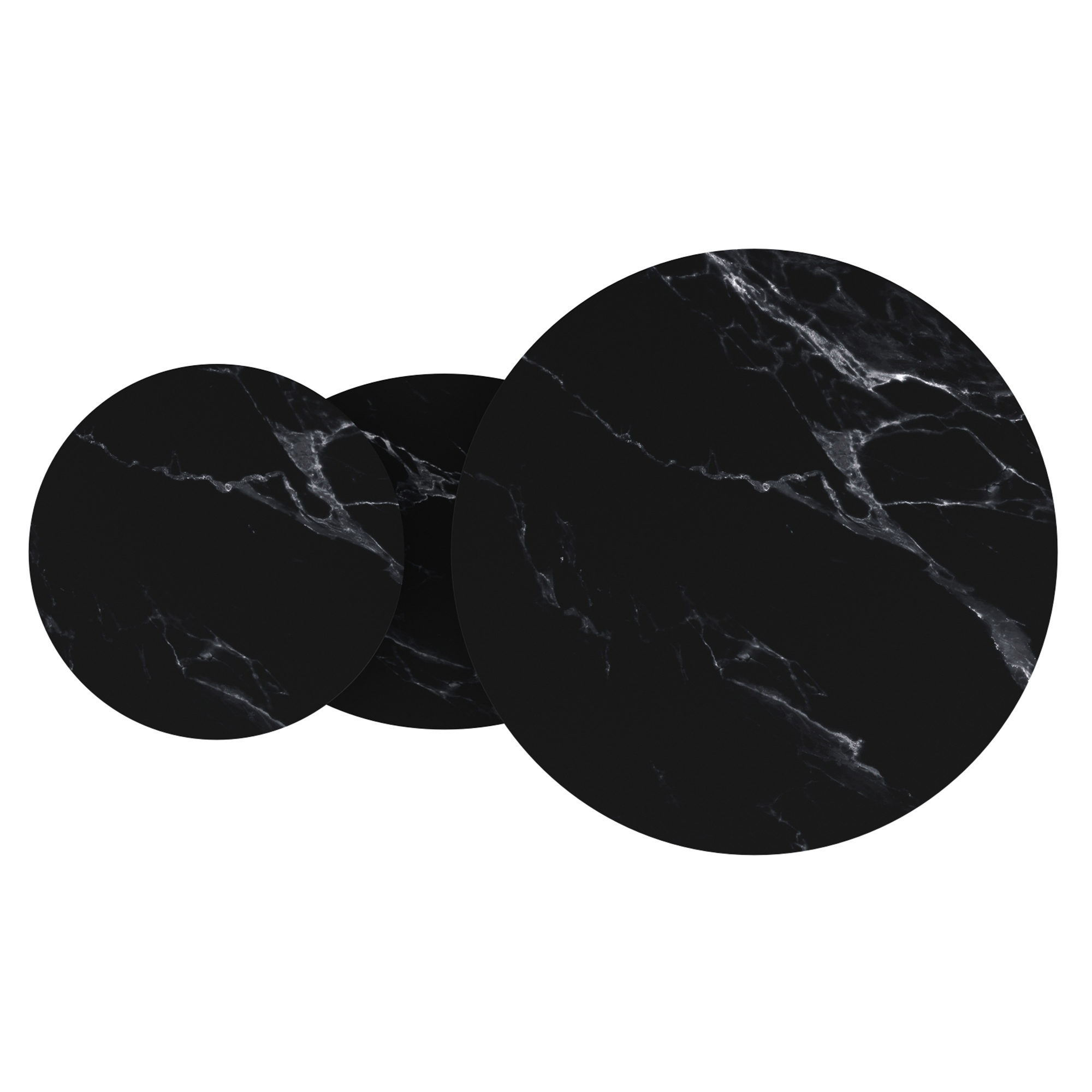 • Sintered stone table tops and base in a black marble finish