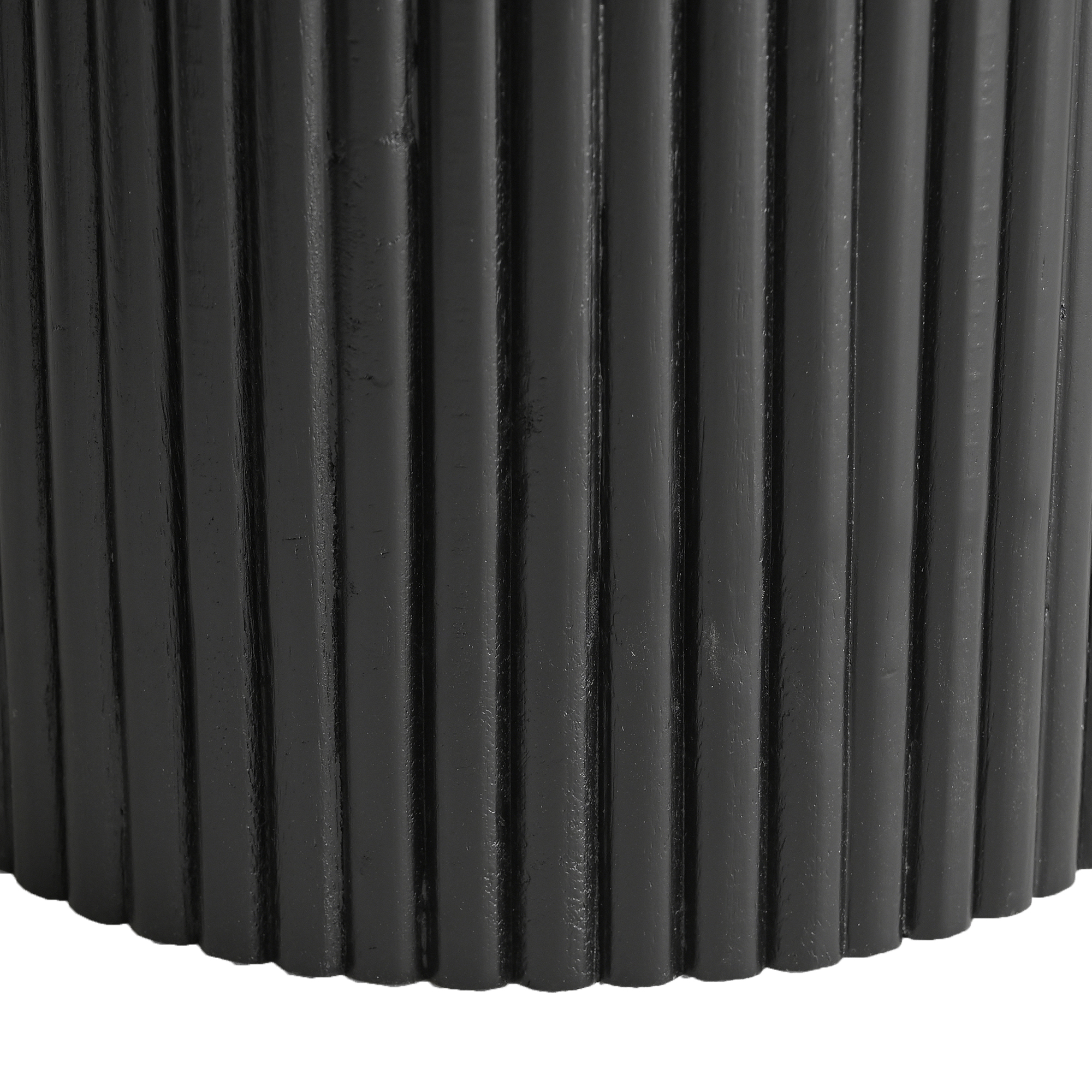 • Triple pedestal solid mango wood reeded base in a black finish