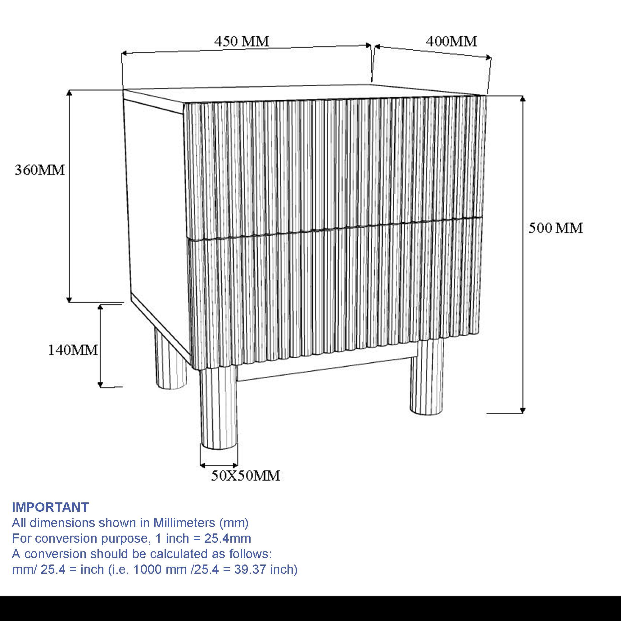 This gorgeous side table, where sustainable craftsmanship meets modern design. The two spacious drawers offer plenty of storage, and are finished with an irresistible reeded front. The solid mango wood construction is durable and sustainable, and offers a beautiful organic feel to your space. Great as a bedside table or as an end table in the living room.
