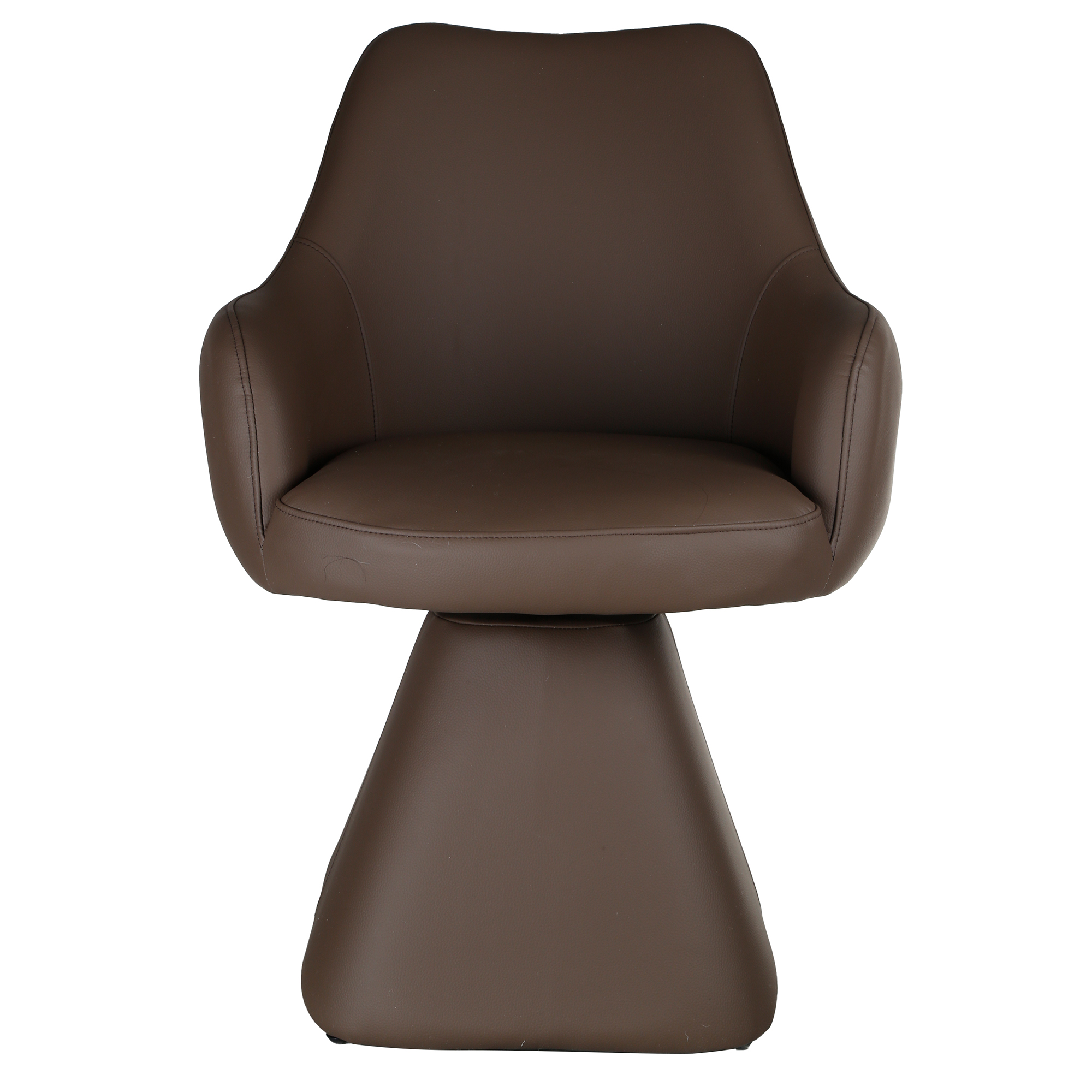 This gorgeous pedestal table brings the joy of formal dining back into everyday living. The winning factor is the multi-toned faux stone finish on the laminated veneer. The polyurethane protective coating provides a solid barrier against spills, scratches and LED light. The 48" diameter will comfortably seat up 6. Fully upholstered seat, back and base in a monochrome look that exudes elegance. The automatic return swivel seat adds another elevated element to the design of these gorgeous chairs and adds functionality to the piece.