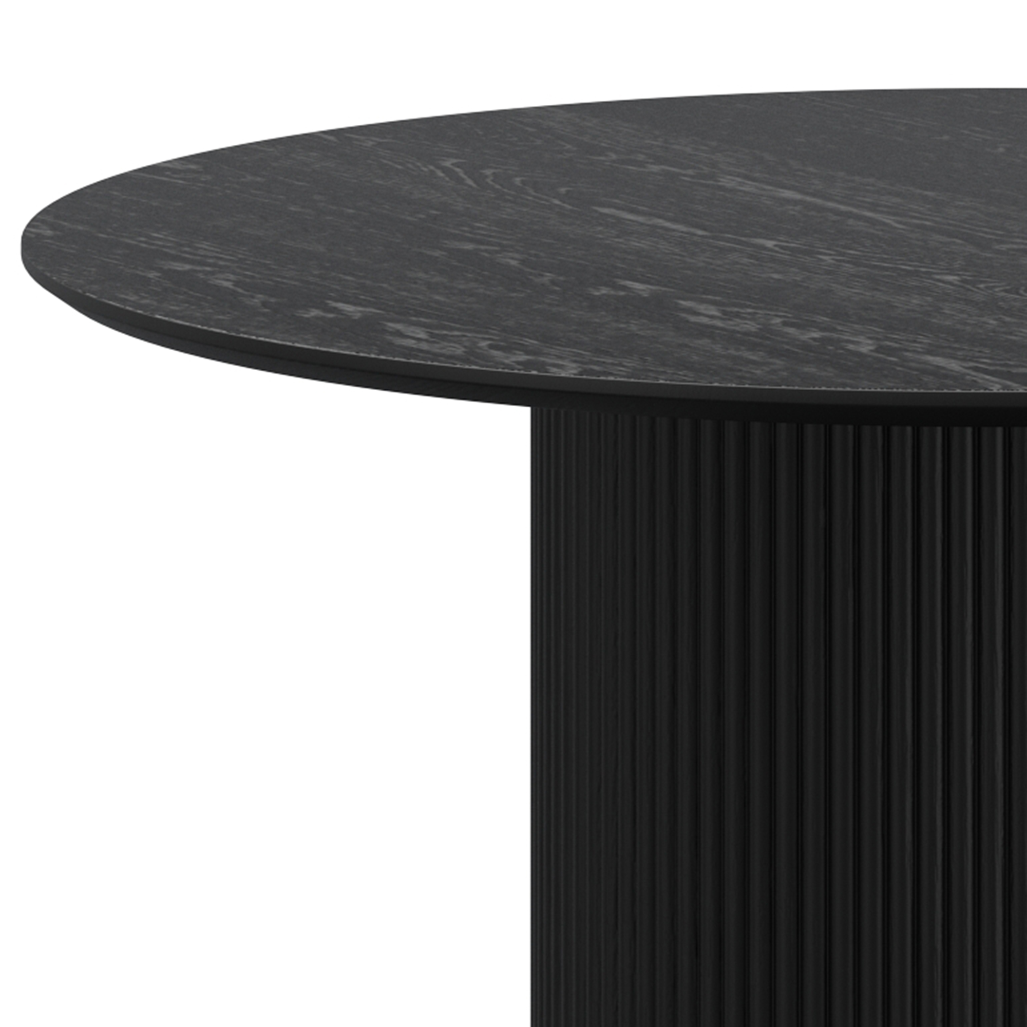 • Wide pedestal, engineered wood base with reeded detail and laminated veneer