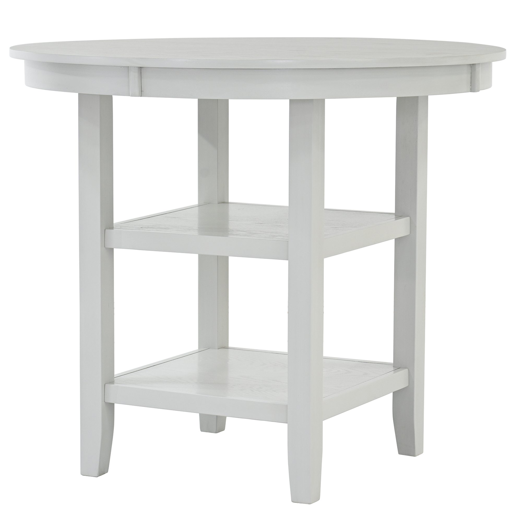 Fun conversations are sure to be had with this casual, 5pc pub table set. The whitewashed finish brings the perfect touch of modern farmhouse to your space. Table stretchers can be used for storage or display.