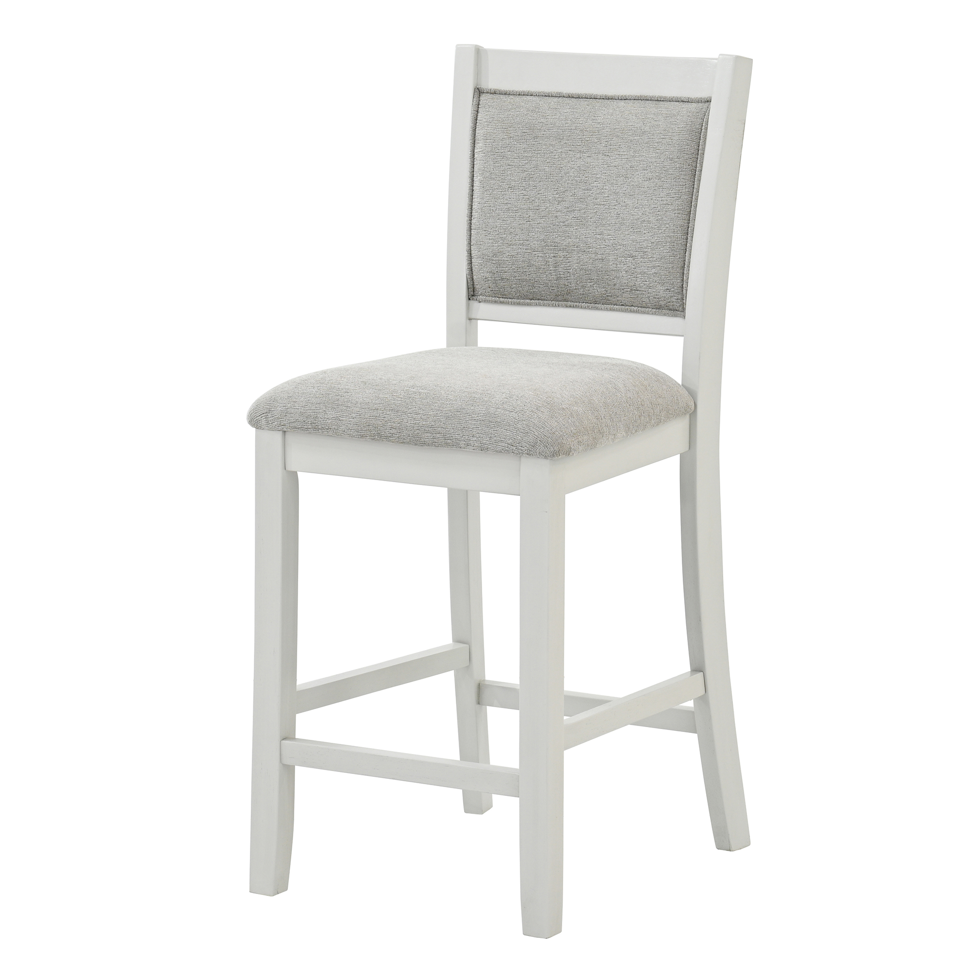 • Solid rubberwood stools in a whitewash finish with textured, warm grey fabric upholstery