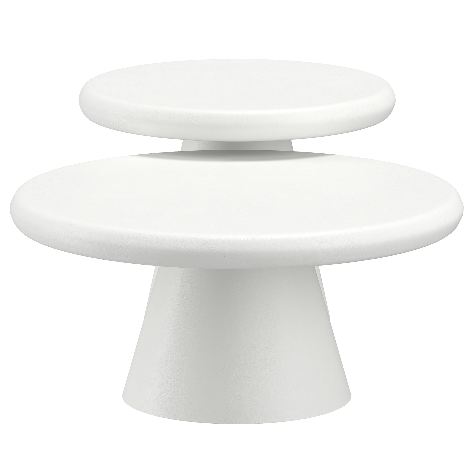 There is no doubt that white textured pieces can create a serious style statement in any space. These tables are no exception - the cement finish gives an earthy, grounded look to the contemporary shape for the perfect modern coffee table set. Clustered together or placed separately, this table set is great for smaller spaces or cozy nooks.