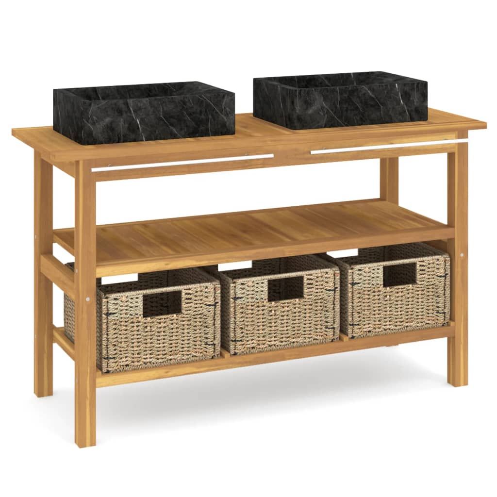 This Elegant Bathroom Vanity Cabinet brings together style and function, perfect for modern bathrooms. Made from solid teak wood with a chic black marble sink, this cabinet enhances your space's look while offering handy storage for toiletries, making your bathroom so much more organized.