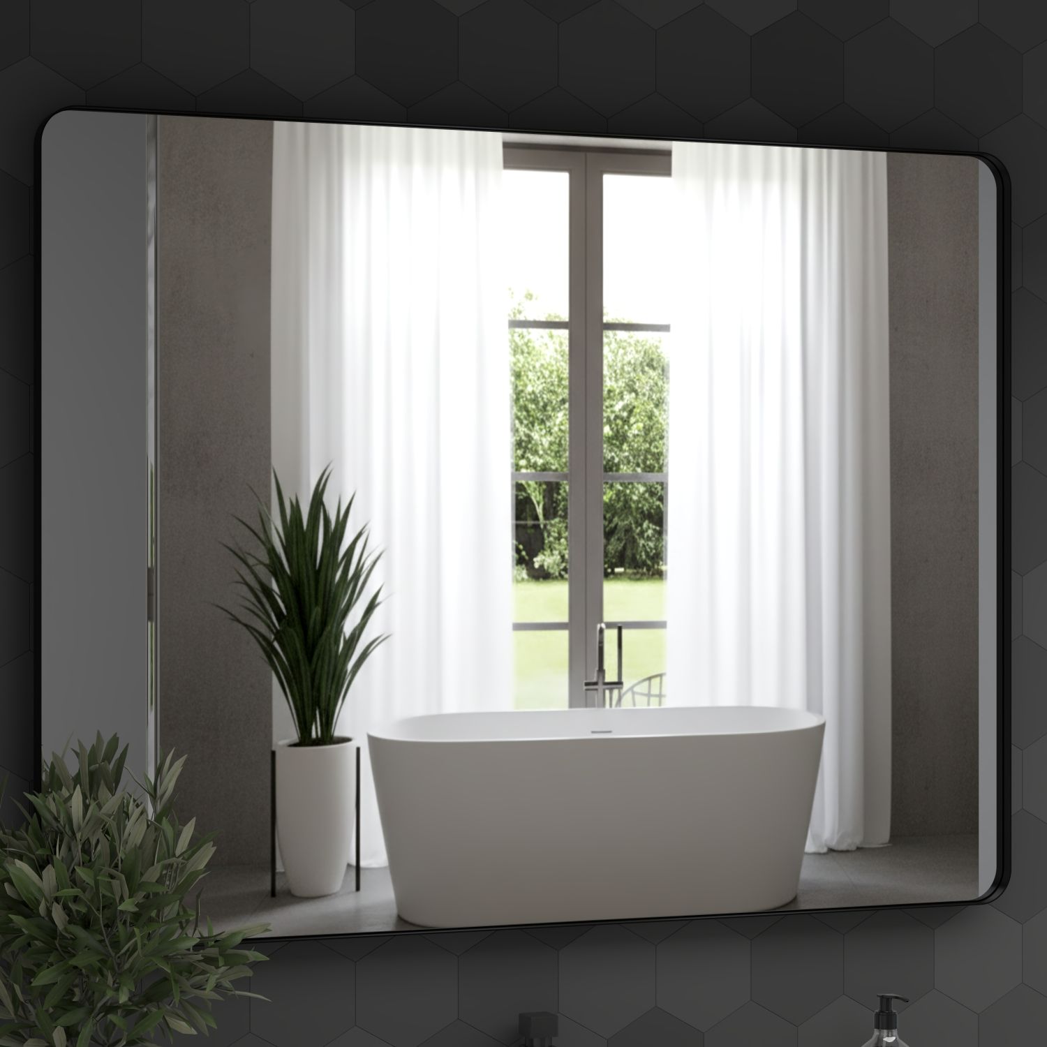 [Sturdy Mirror with Premium Materials]: Black metal mirror with aluminum alloy frame which is anti-rust; and also the metal-framed mirror is built with explosion-proof membrane which ensure the mirror being safely and securely for using